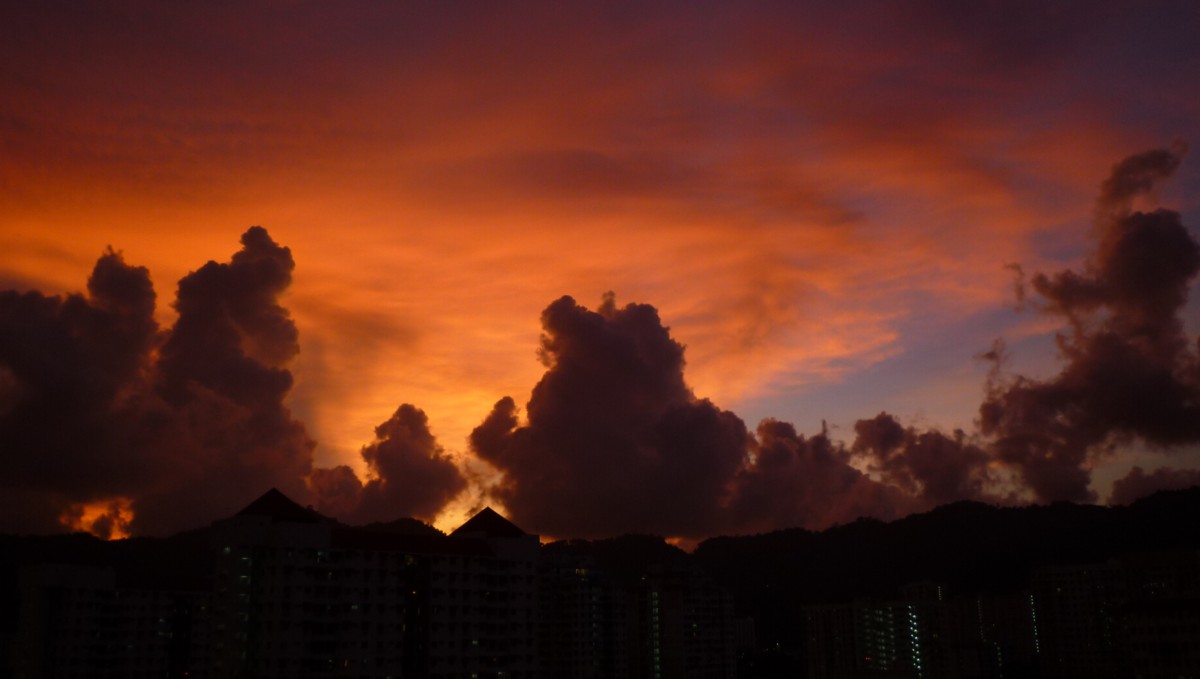 Sometimes in the evening, it is facinating to see dark clouds mushrooming above the apartment blocks.